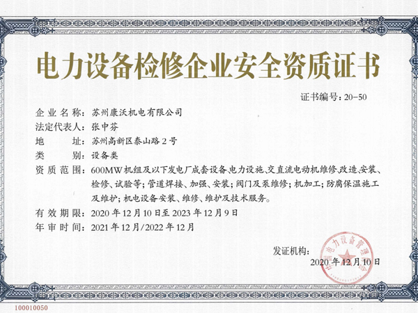 電力設備檢修企業安全資質證書